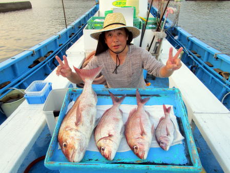 ![]() 8月11日(火) 午前 マダイ5枚(3.5k・2.8k・1.9k・1.8k他) 市川市 酒井様 |